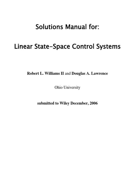XWO - Online PDF LINEAR STATE SPACE CONTROL SYSTEM SOLUTION MANUAL mobipocket BookBoon
